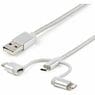 StarTech.com 1.01 m Lightning/USB Data Transfer Cable - 1 Each - Cable for iPod, iPad, iPhone - First End: 1 x 4-pin USB 2.0 Type A - Male - Second End: 1 x 8-pin Lightning - Male, 1 x 24-pin USB 2.0 Type C - Male, 1 x 5-pin Micro USB 2.0 Type B - Male - 480 Mbit/s - MFI - Nickel Plated Connector - 22/28 AWG - Silver